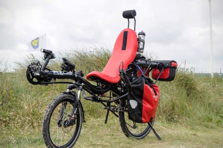 Siège baquet revêtement Ventisit - Appuie tête - guidon haut - deux porte bidon -deux rétroviseurs - deux porte bagages permettant de transporter 4 grosses sacoches et un sac- suspension fourche avant et amortisseur arrière - pneus 1,75 Road Cruiser à l'avant et Schwalbe Marathon Plus à l'arrière