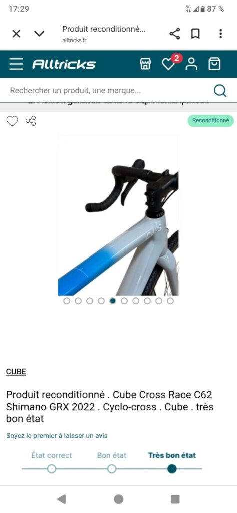 Cube cyclo-cross, très bonne état, réactif, léger....
