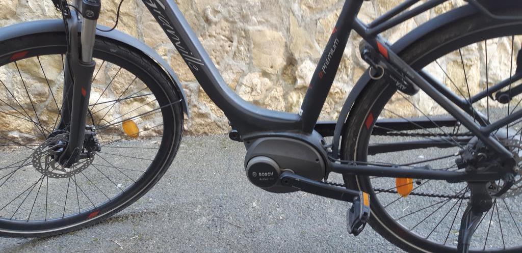 VTC électrique Granville E Premium 30 Bosch TM 2019, cadre alu robuste avec moteur central Bosch Active Line 40Nm et batterie 400Wh pour une autonomie généreuse. Équipé d'une fourche SR Suntour 50mm, transmission Shimano Altus 7v et freins hydrauliques pour un usage ville/loisirs confortable et sécurisé. Idéal pour trajets quotidiens, état comme-neuf.