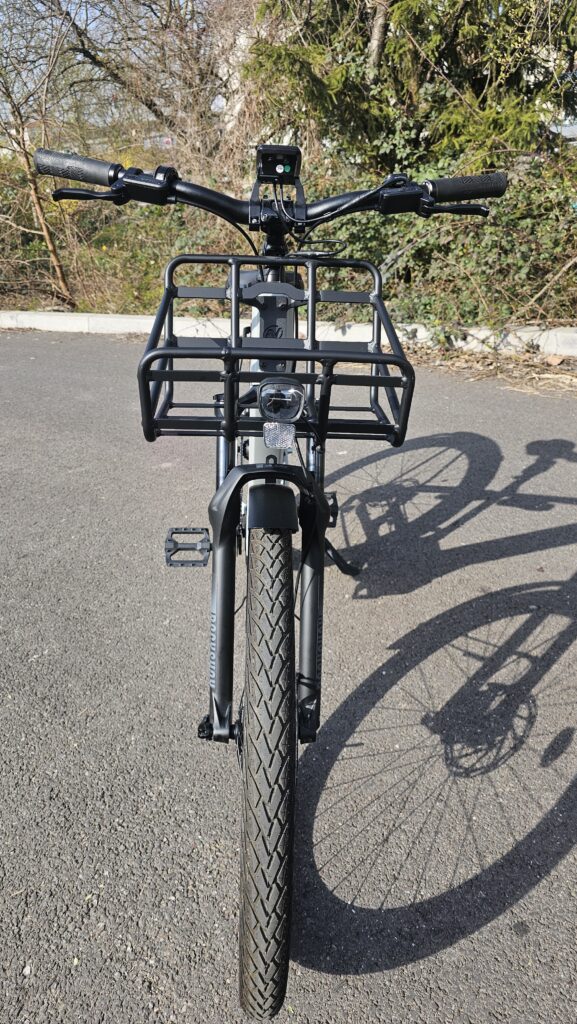 VTC électrique urbain Nakamura Crossover GT 2025 avec transmission automatique révolutionnaire. Moteur central puissant (100 Nm), batterie 460 Wh, fourche RockShox 120mm et freins hydrauliques Tektro pour une conduite intuitive et sécurisée en ville.