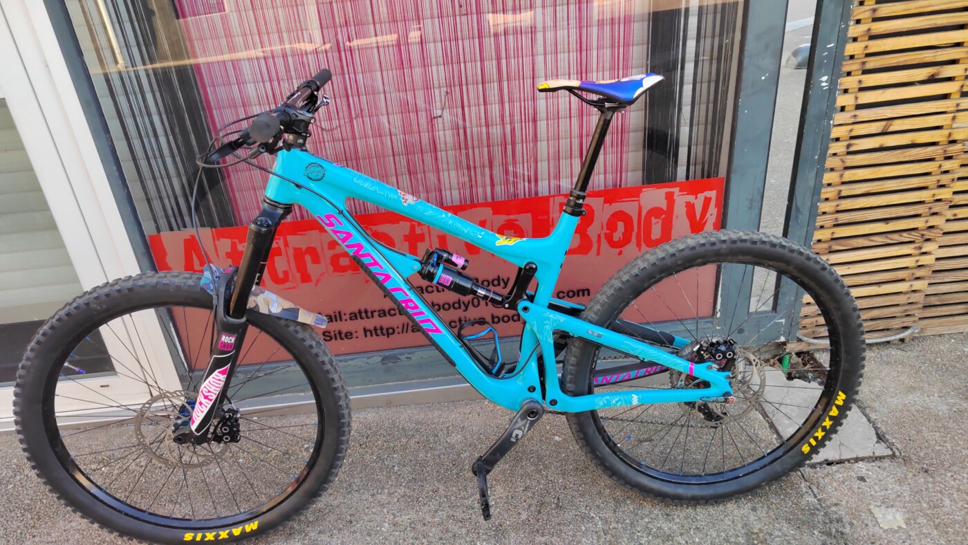 Fourche : RockShox (stickers custom), débattement enduro