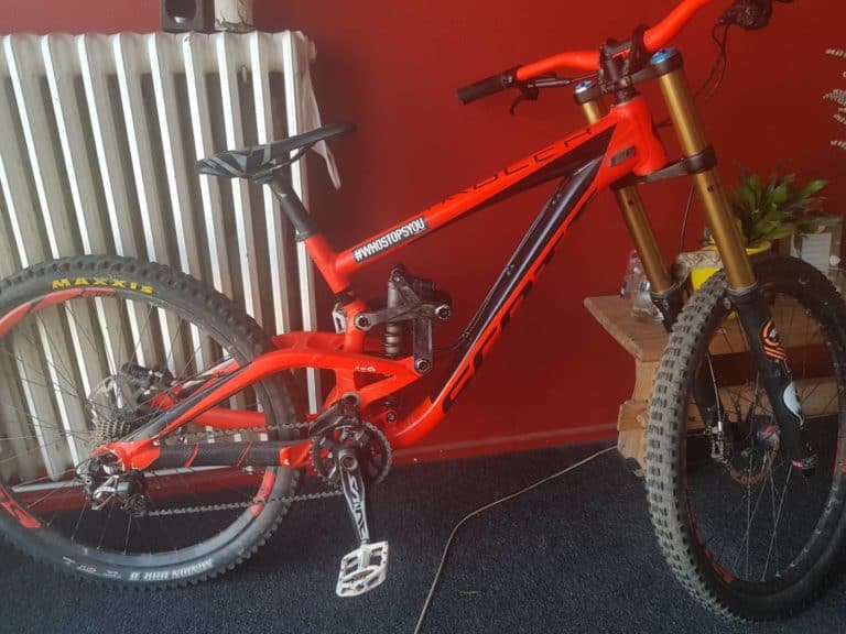Celui-ci est un SCOTT Gambler de 2015 (rouge) équipé: