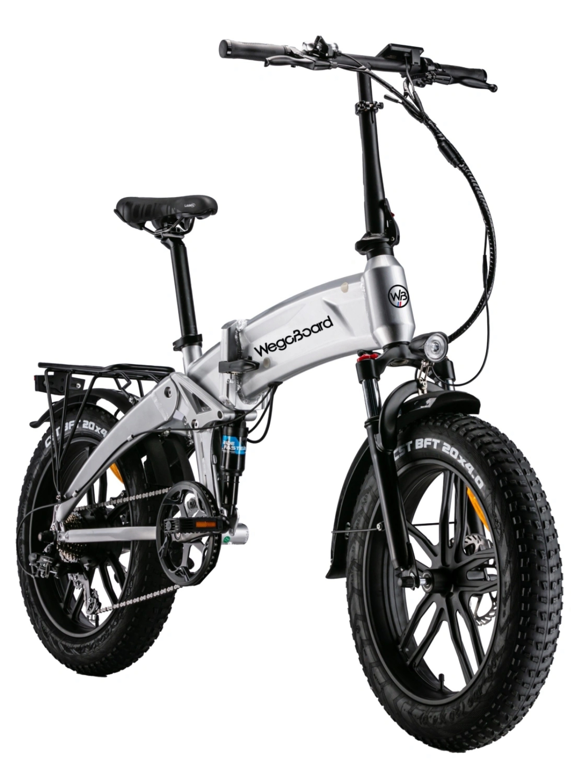 Le WegoBoard SuperBike Plus est un vélo électrique pliable tout-terrain ultra-robuste avec suspensions avant/arrière, roues fat 20x4.0 et moteur Bafang 250W pour 60 km d'autonomie. Idéal pour ville et chemins difficiles, il pèse 31 kg et supporte 130 kg de charge. Batterie amovible rechargeable en 4-6h, 5 modes d'assistance jusqu'à 25 km/h.